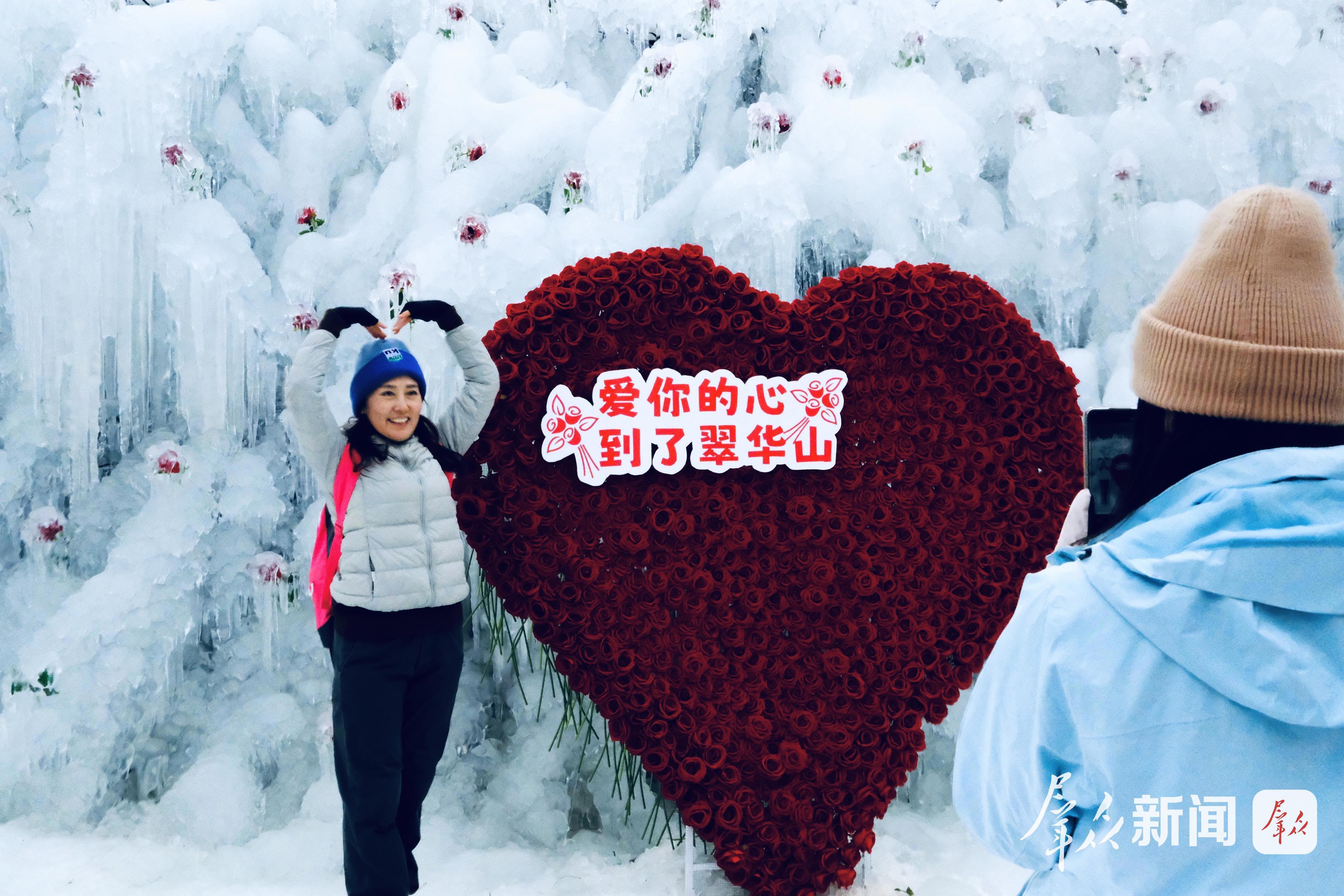 何須遠(yuǎn)行尋覓冬趣?1月14日,西安翠華山化身為一座冬日秘境,一場靜謐而豐盛的冬日嘉年華,正悄然綻放其治愈之力。巨型冰瀑如時間凝固的星河,垂落下來,晶瑩之中透出湛藍(lán),在冬日稀薄的陽光下流轉(zhuǎn)著泠泠的光。中外游客駐足其下,仿佛步入一片被施了魔法的水晶之境,只余快門聲與贊嘆聲輕輕回蕩。其間,一朵以冰雪精心雕琢的玫瑰尤為震撼——它并非綻放,而是凝結(jié);并非嬌柔,卻顯凜然,仿佛將整季的寒冽與浪漫都收束于剔透的形態(tài)中,勾勒出古城西安冬日里最富詩意的一面。