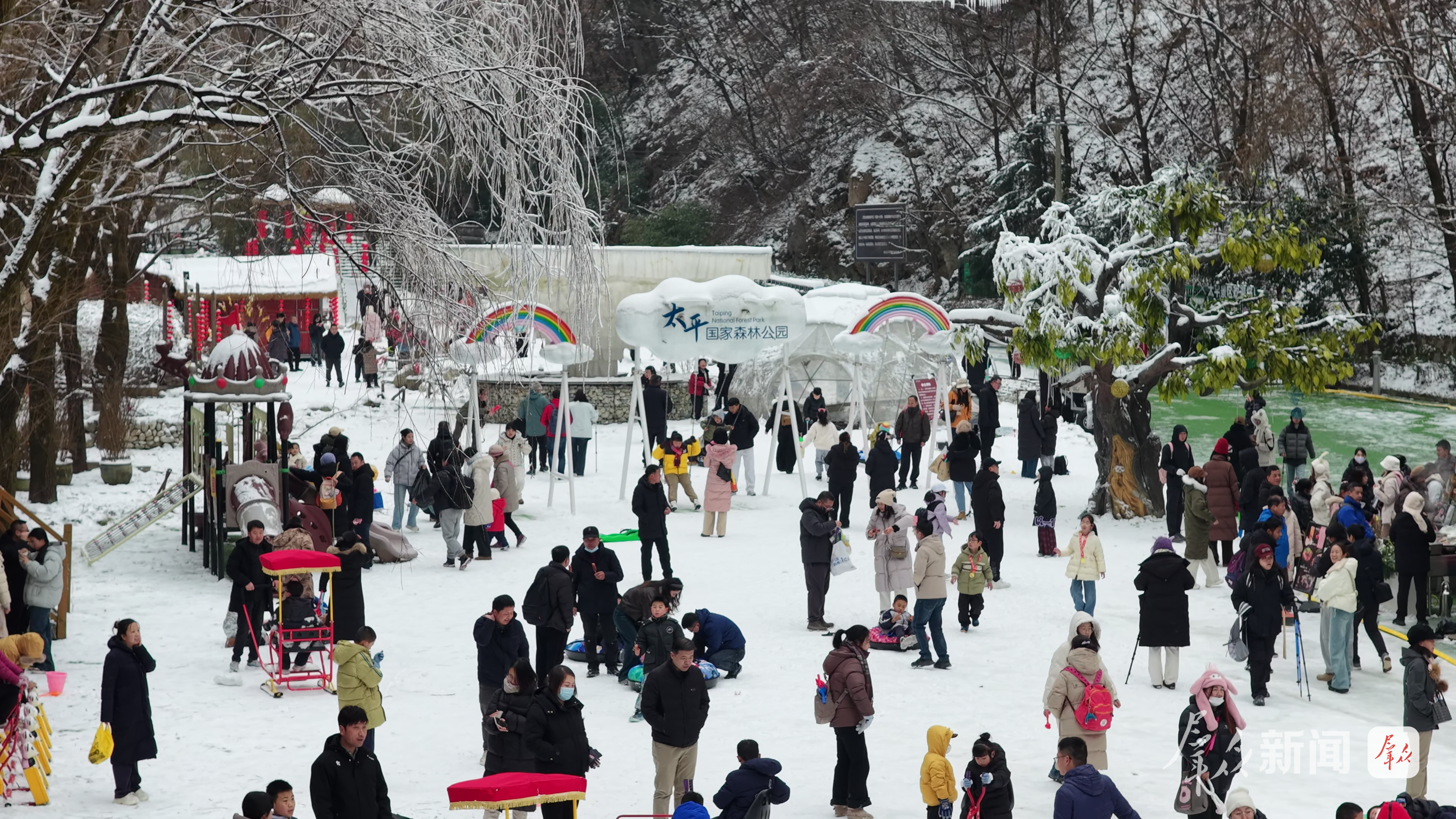 市民們在太平國家森林公園戲雪