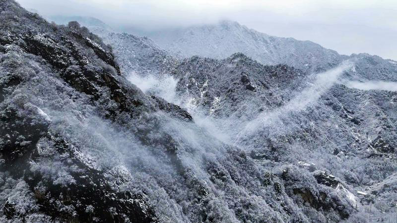 2月23日,農(nóng)歷正月初七,突如其來的大雪,讓西安翠華山瞬間化作一幅水墨長卷。漫天飛雪為這座秦嶺名山披上圣潔銀裝,山巔云霧繚繞,瓊枝玉樹,勾勒出一幅“終南陰嶺秀,積雪浮云端”的詩意畫卷。